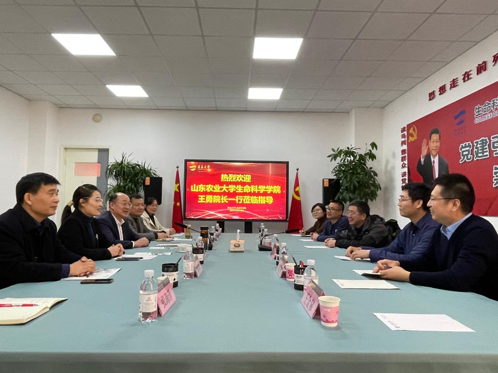 12月18日下午,山东农业老员工命科学学院王勇经理一行4人来公司进行调研交流。公司党委书记薛冰,党委副书记、经理许元红在博雅楼301会议室出席座谈会,公司党委书记薛冰主持座谈会。